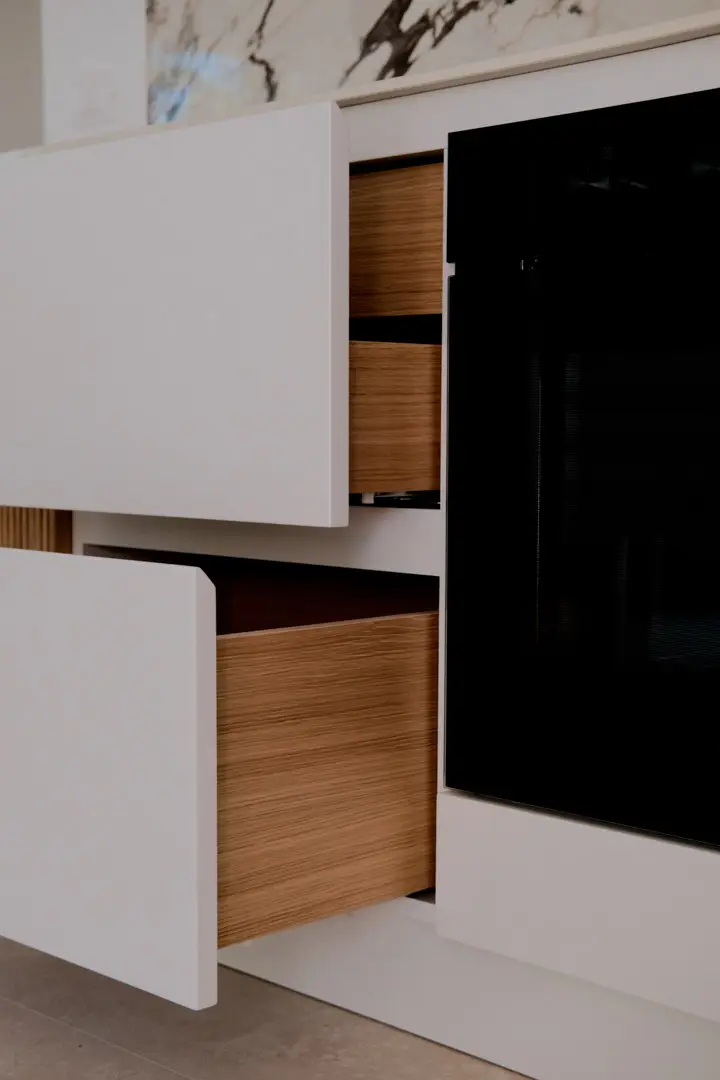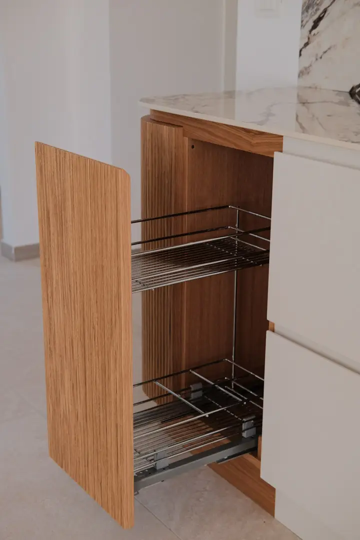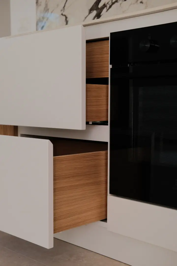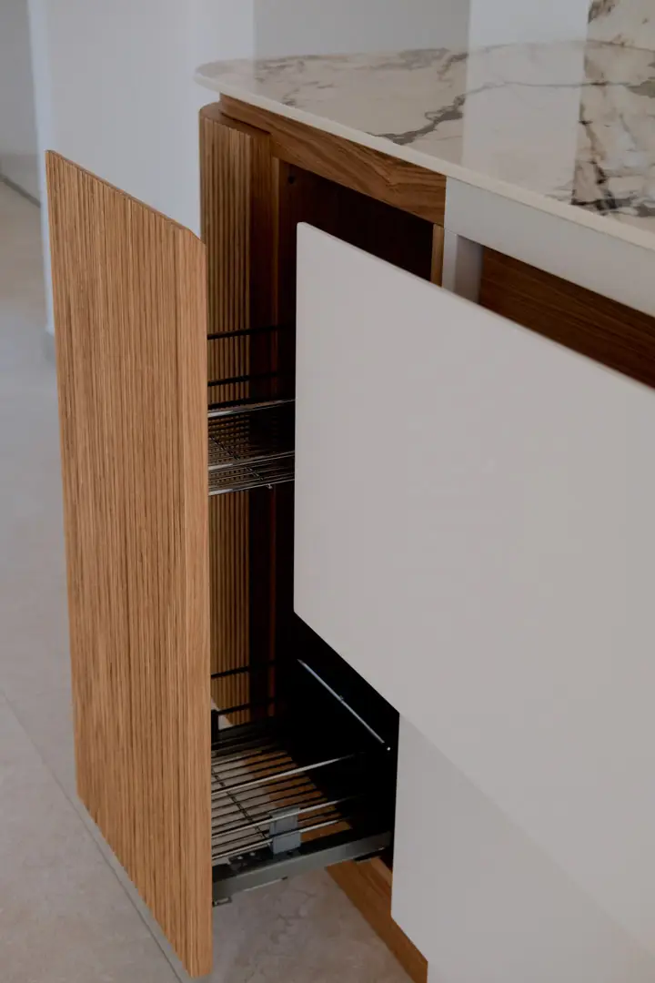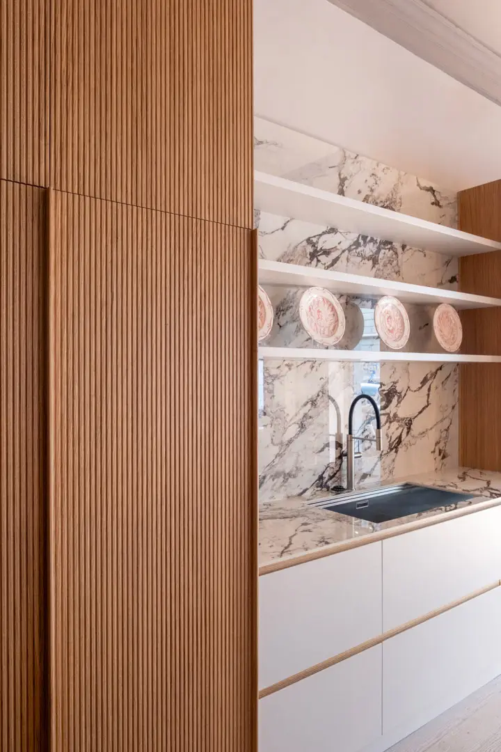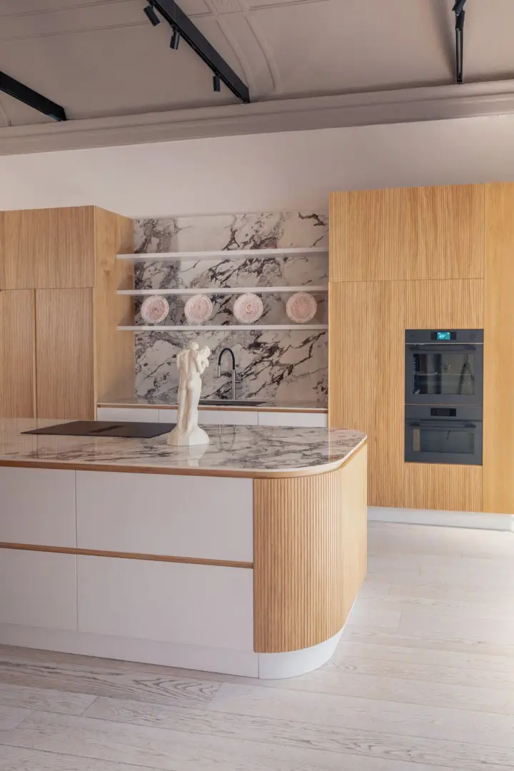 Gioca con la luce scegliendo colori chiari e un top in gres porcellanato effetto marmo.