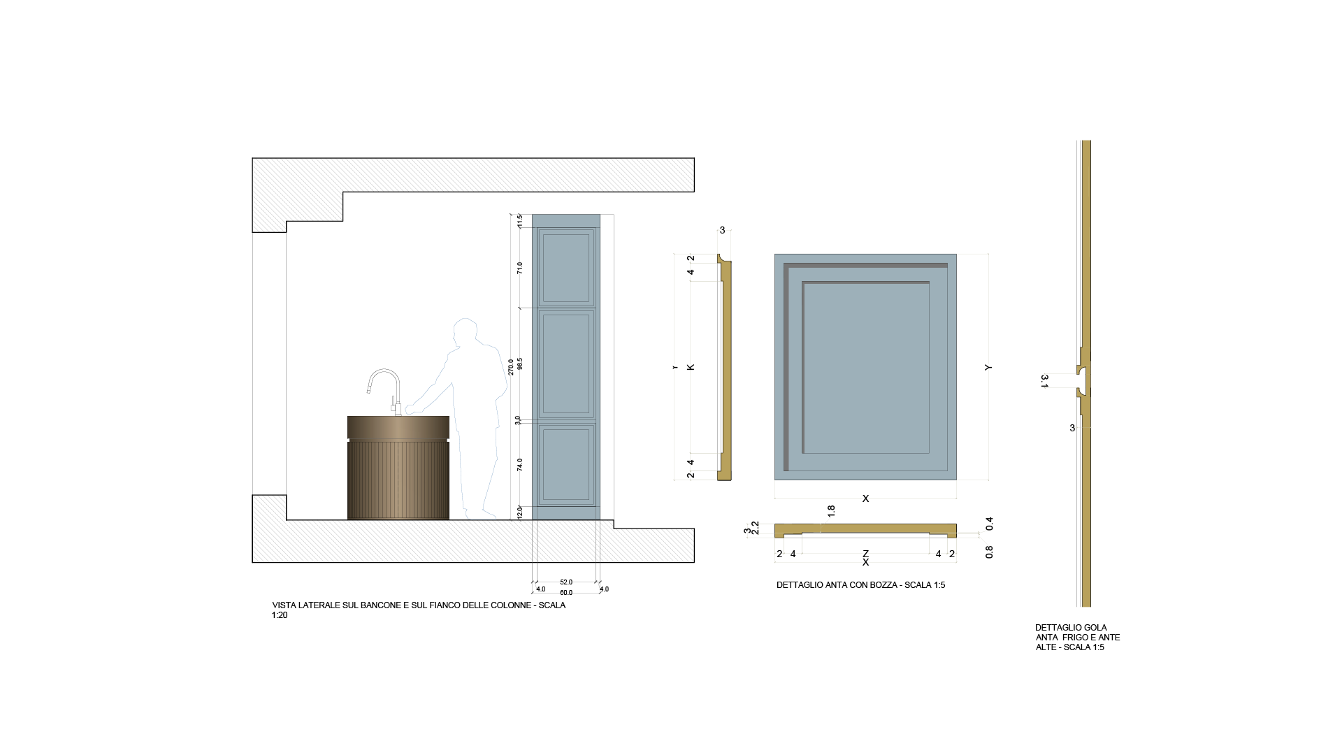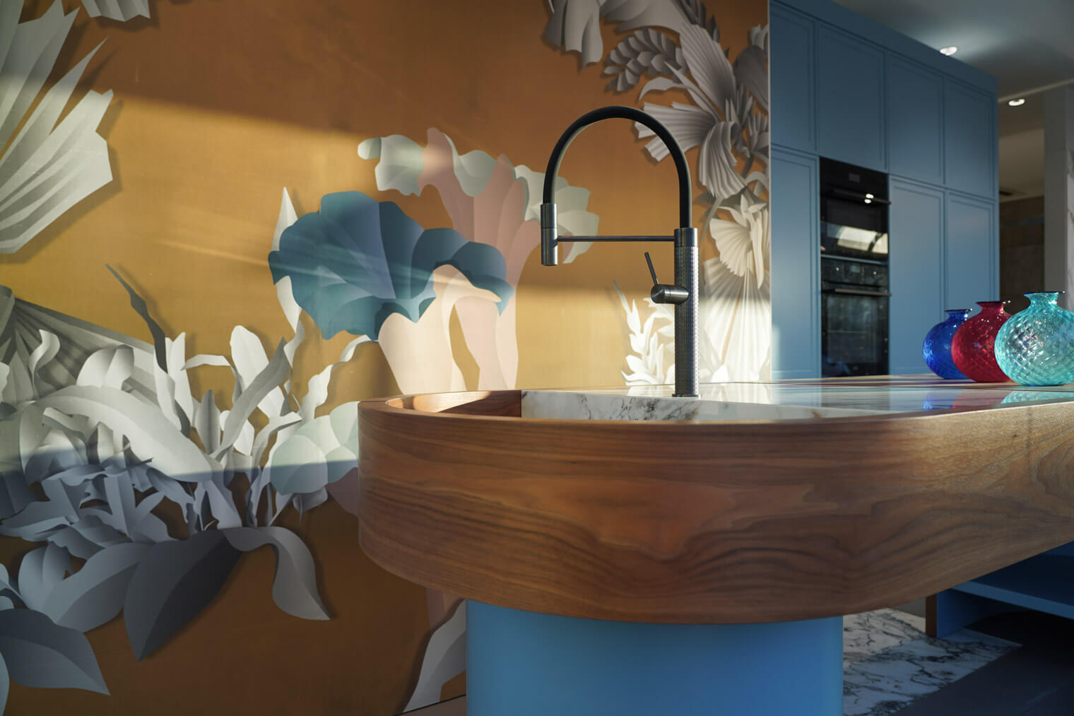 Il bancone della cucina è stato studiato come un puro oggetto di design, in modo da poterlo collocare come oggetto di arredo in una qualsiasi stanza della casa.