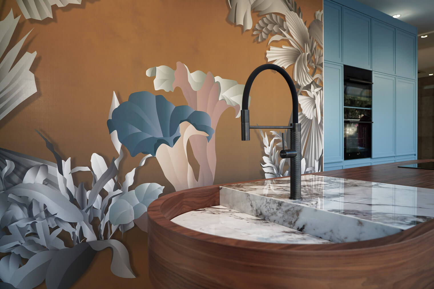 Sapore di Mare è un progetto che racchiude le note dell’Isola, raccontando il suo carattere mediterraneo in tutte le sue sfumature, partendo dal colore azzurro e quindi un richiamo al mare e all’acqua dell’Elba, così come il legno in noce canaletto che ricorda i boschi sulle colline elbane.
