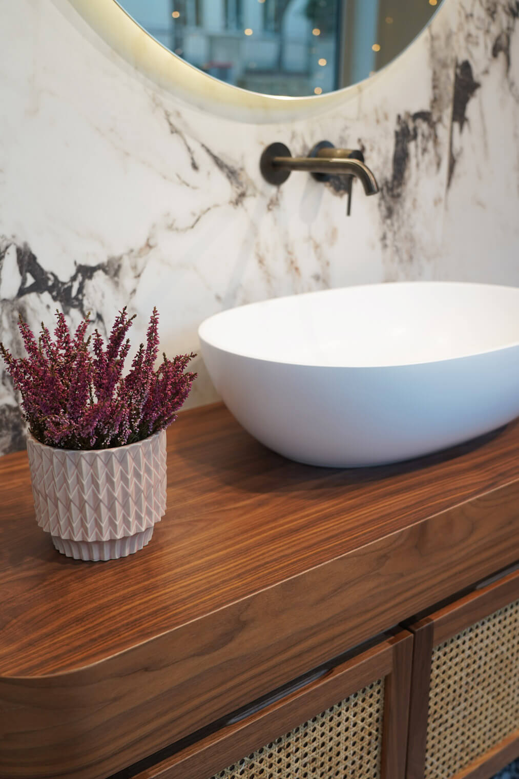 Le linee ricordano i due modelli simbolo del brand: L’Elegante e la Romantica, volutamente mixate insieme. La carta da parati di Misha Milano design by Cristina Celestino impreziosiscono l’ambiente